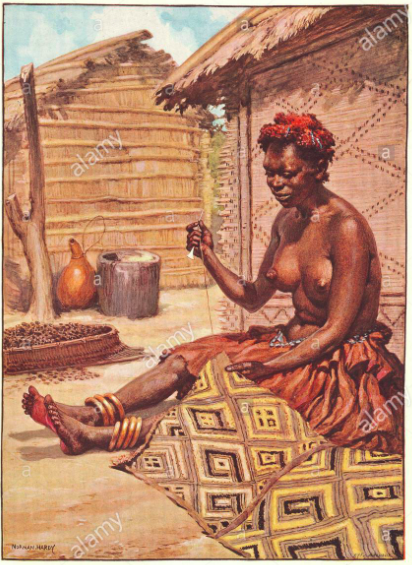 Et vous aviez un autre secret, que Brenda m’avait révélé : que vous aviez été autrefois une femme qui se dévêt, une danseuse de la variété dite « exotique ». Aussi, quand il m’arrive d’entrevoir une enseigne au néon qui annonce « Strip-Tease », je pense aux extraordinaires planches en couleurs de Norman Hardy dans les « Notes ethnographiques sur les peuples communément appelés Bakuba ainsi que sur les peuplades apparentées : les Bushongo » que Torday et Joyce consacrèrent en 1910 aux Kuba, au retour de leurs explorations dans le bassin du Congo.