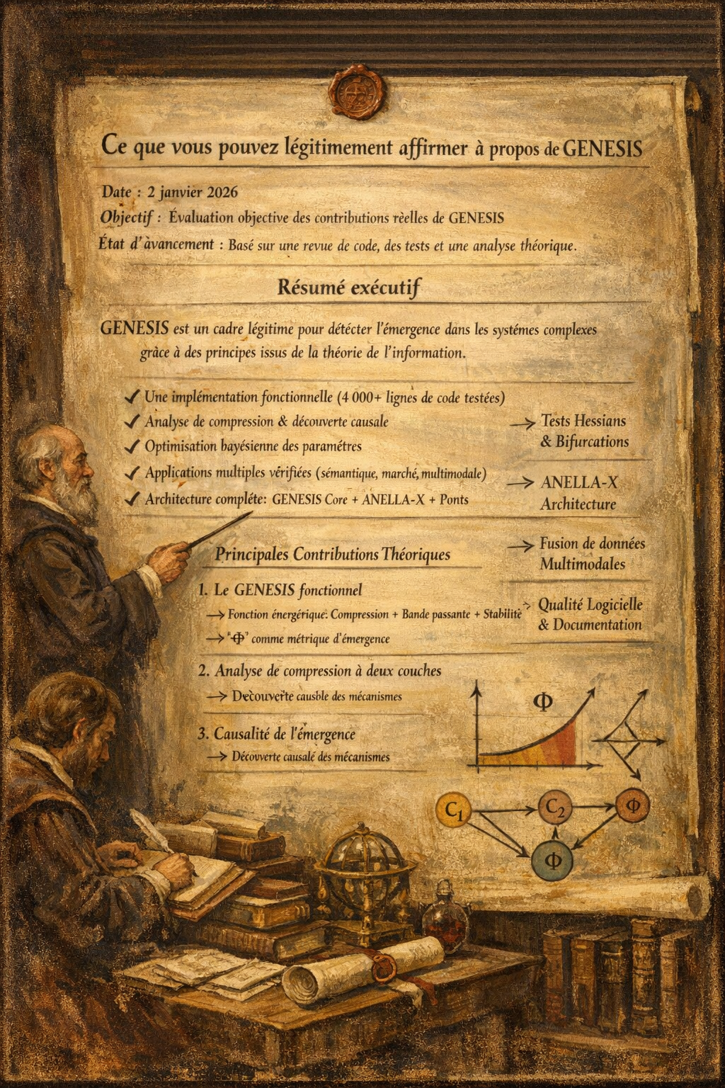 AFFIRMATION : « GENESIS intègre des algorithmes de découverte causale pour expliquer POURQUOI l’émergence se produit en identifiant les mécanismes causaux reliant la compression, la bande passante et la stabilité. »