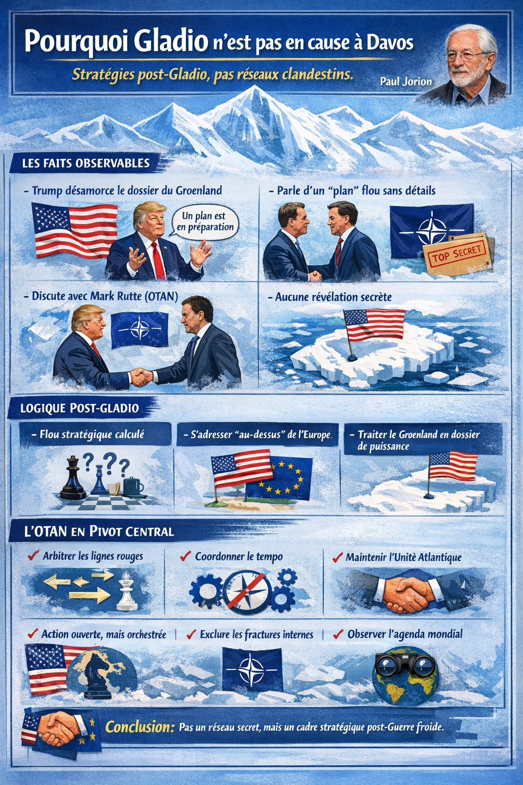 Trump faisant machine-arrière sur le Groenland à Davos, affirmant qu’il abandonnait l’idée des tarifs douaniers parce qu’ »un plan était allait être mis au point » sans en dire plus, cela voudrait-il dire que Gladio serait encore actif d’une manière ou d’une autre ?